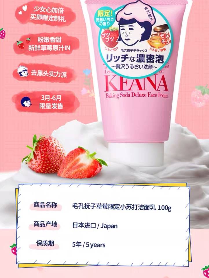 石泽研究所毛孔抚子草莓限定去黑头洁面乳日本洗面奶大米面膜