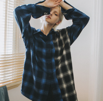 BEASTER 秋季早秋情侣装潮牌嘻哈拼接格子衬衫男外套衬衣国潮潮流