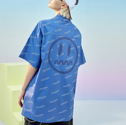 BEASTER小恶魔鬼脸情侣潮牌满印衬衫男短袖潮流宽松国潮衬衣ins潮