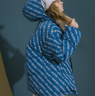 BEASTER 冬季满印鬼脸logo两面穿潮牌嘻哈连帽羽绒服男外套国潮