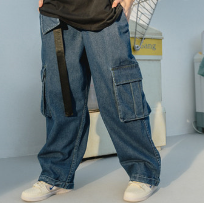 BEASTER秋季2019新款情侣潮牌嘻哈牛仔蓝宽松工装裤男裤子国潮ins