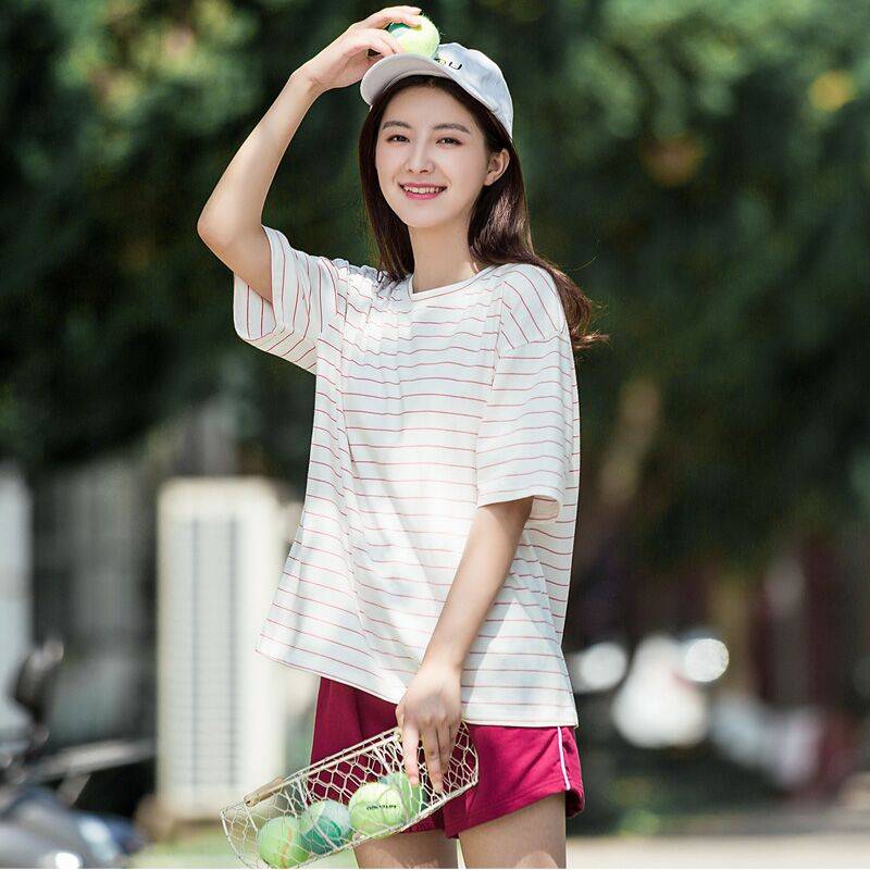 夏季新款圆领横条纹休闲潮流短袖T恤学生女