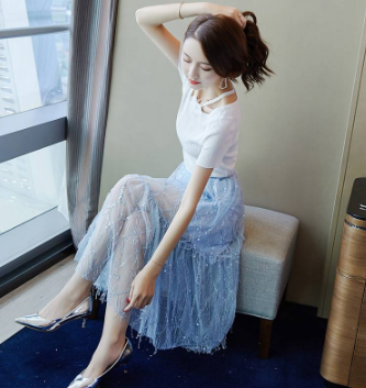 爆款2019夏季新款女装时尚清新甜美不规则半身裙