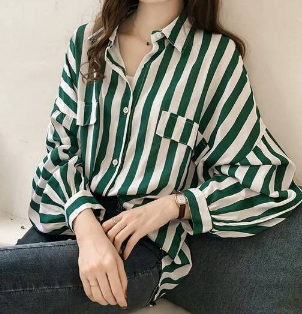 女装新款2020港味宽松大码bf条纹衬衫女长袖上衣薄款