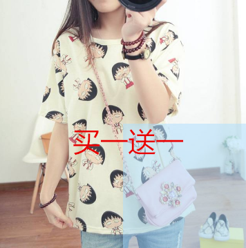 女装T恤衫2018夏日韩风卡通印花休闲宽松短袖上衣