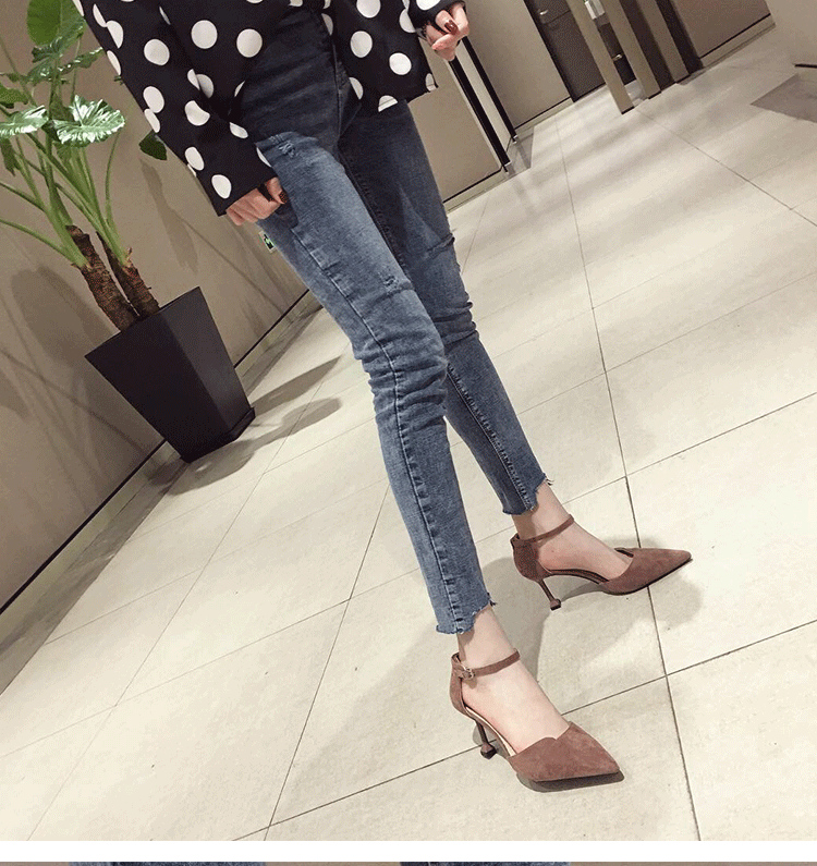 6913韩版2019春夏潮流高跟鞋绒面百搭细跟性感尖头女单鞋浅口女鞋