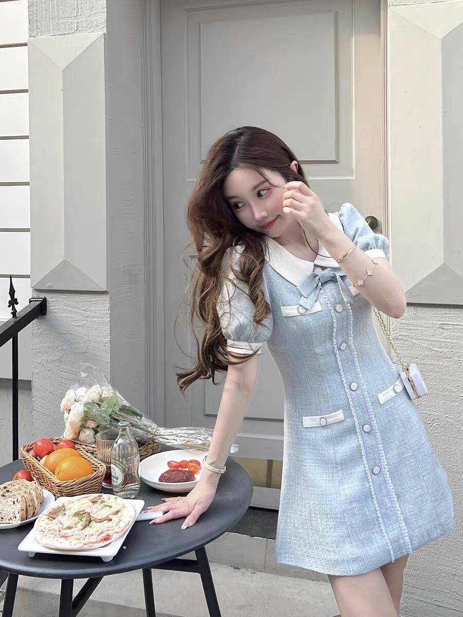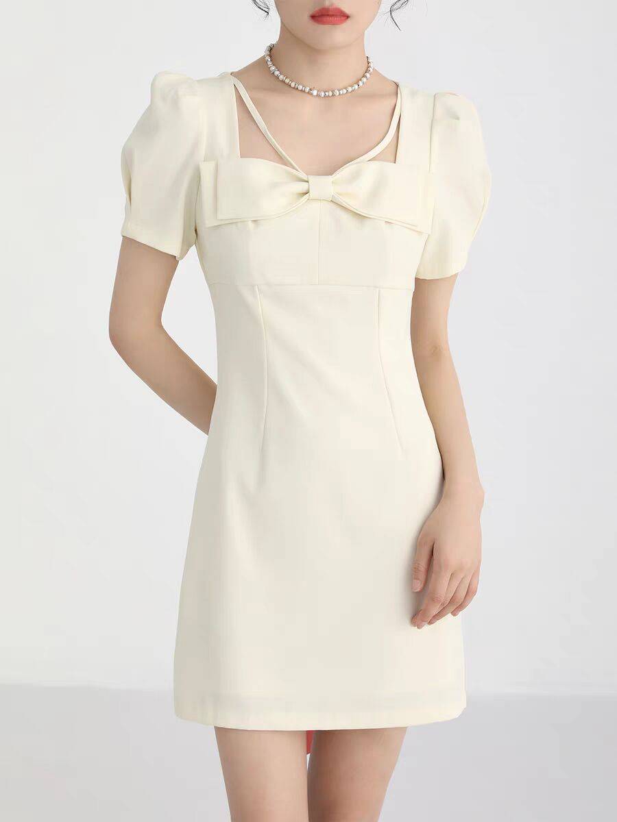 温柔风蝴蝶结气质高级感奶甜连衣裙子短款显瘦夏季女装
