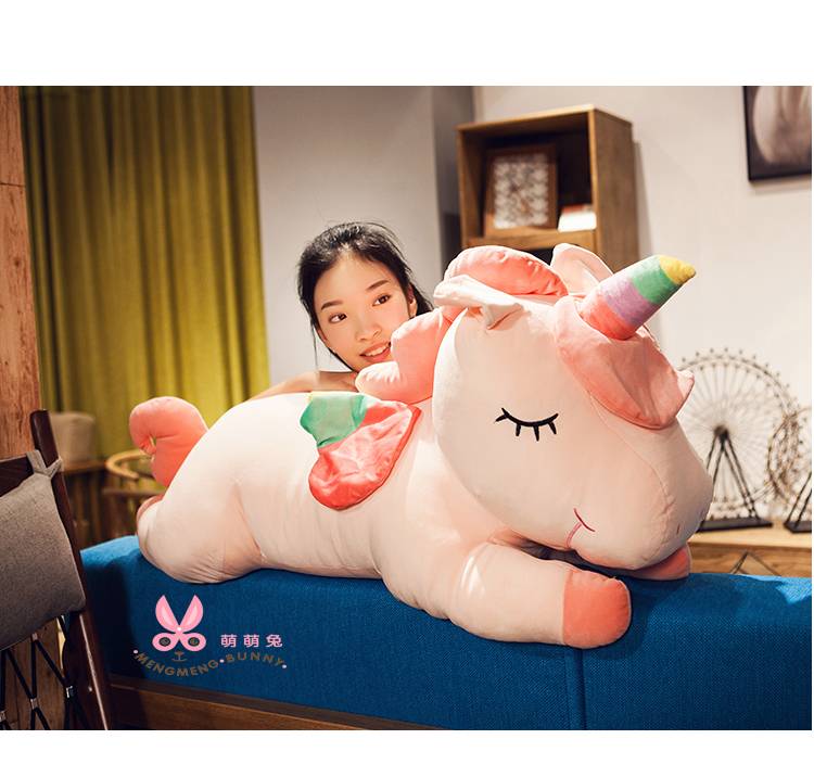 ins网红款抱枕陪你睡玩偶懒人羽绒棉软趴趴公仔极软陪娃睡独角兽女