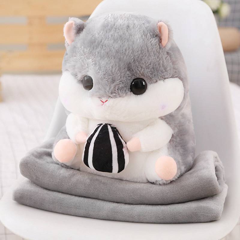 可爱仓鼠抱枕手捂毯子三合一毛绒玩具毛毯超萌搞怪仓鼠公仔女生