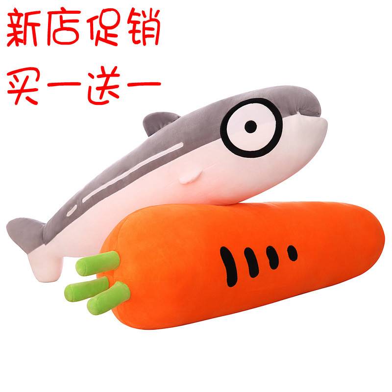 及软可爱马哈鱼胡萝卜抱枕靠垫毛绒玩具玩偶鱼布娃娃儿童公仔买一送一