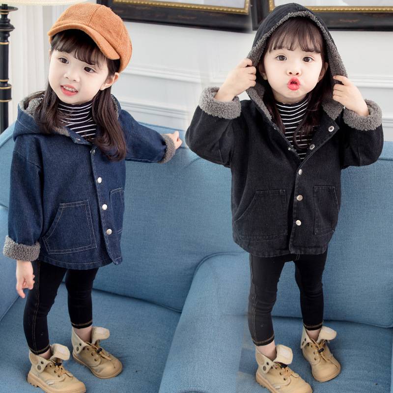 新款秋装2018 秋冬连帽牛仔外套 女童加绒 羊羔绒牛仔服