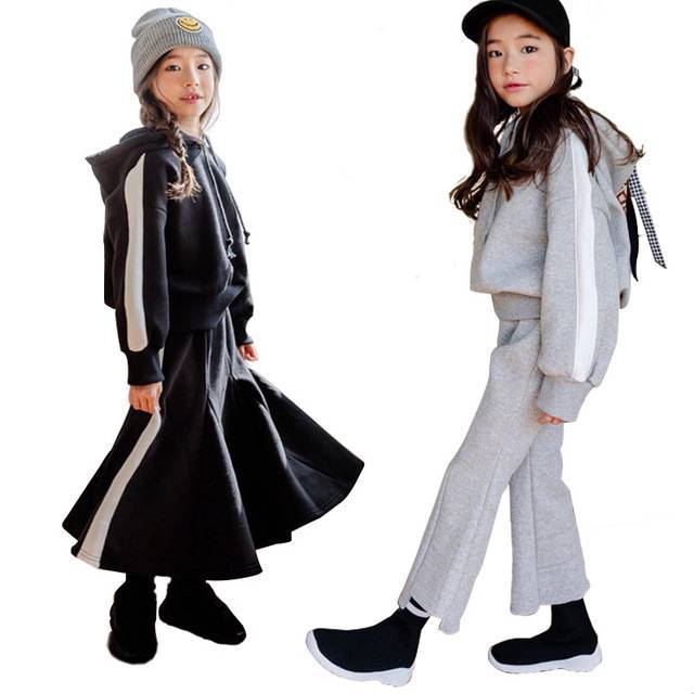 韩版童装冬季加绒女童套装加厚连帽卫衣裙子运动裤子两件套中大童