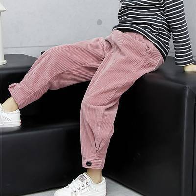 女童裤子加绒加厚秋冬外穿2018新款休闲条绒裤儿童哈伦裤韩版宽松