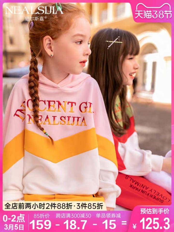 重工字母刺绣/青春靓丽撞色卫衣 宽松收口卫裤!套装