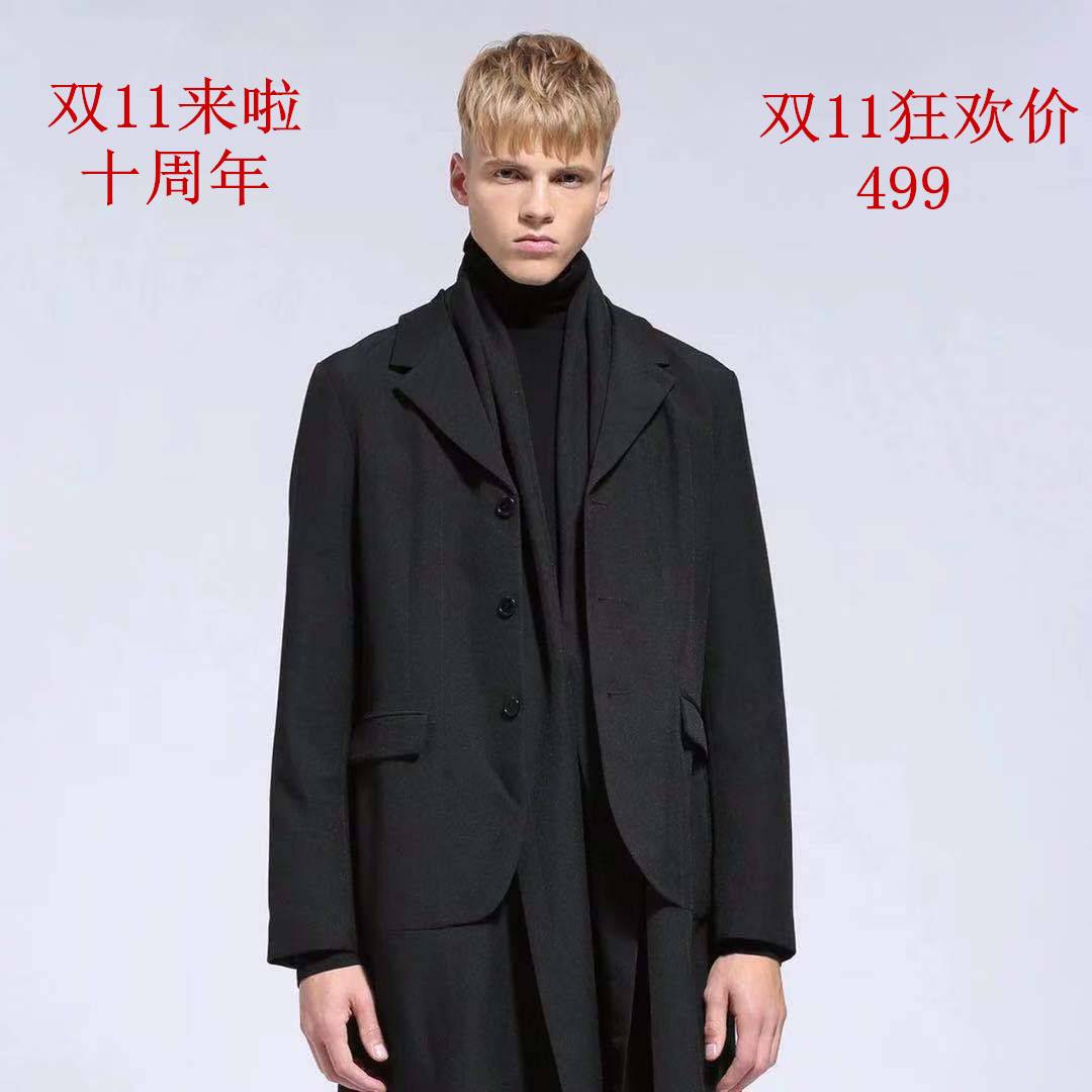 2018男装冬装黑色宽松长款时尚拼接假两件西装外套 499.00 已售:0件