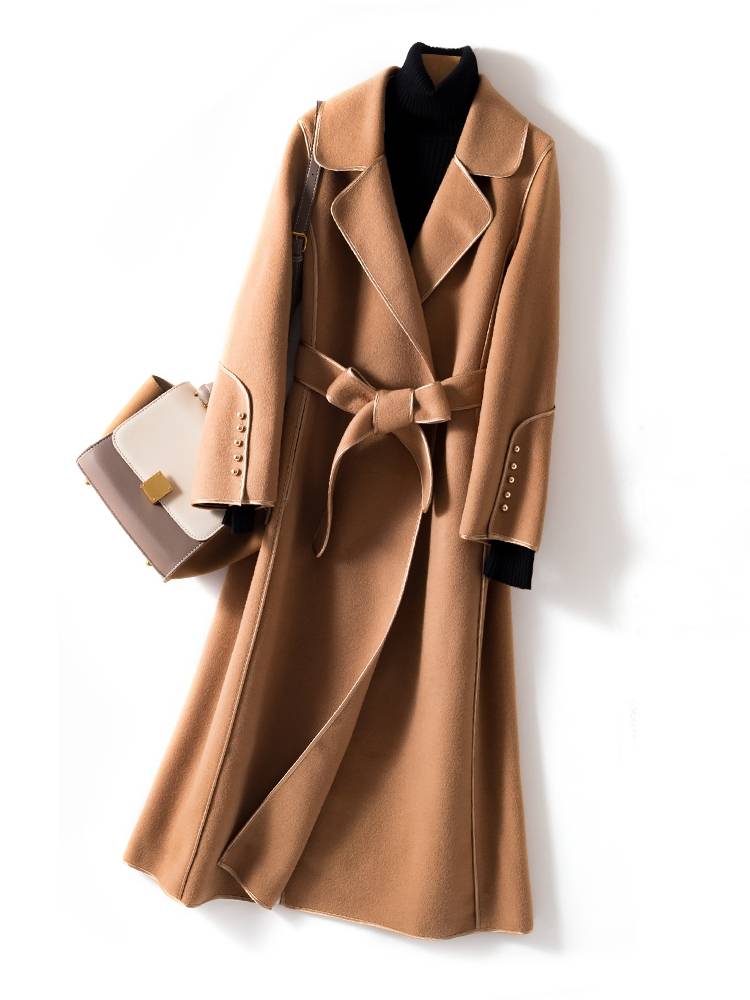 2019秋季新款品牌女装英伦气质纯色长袖西装领双排扣女式风衣外套