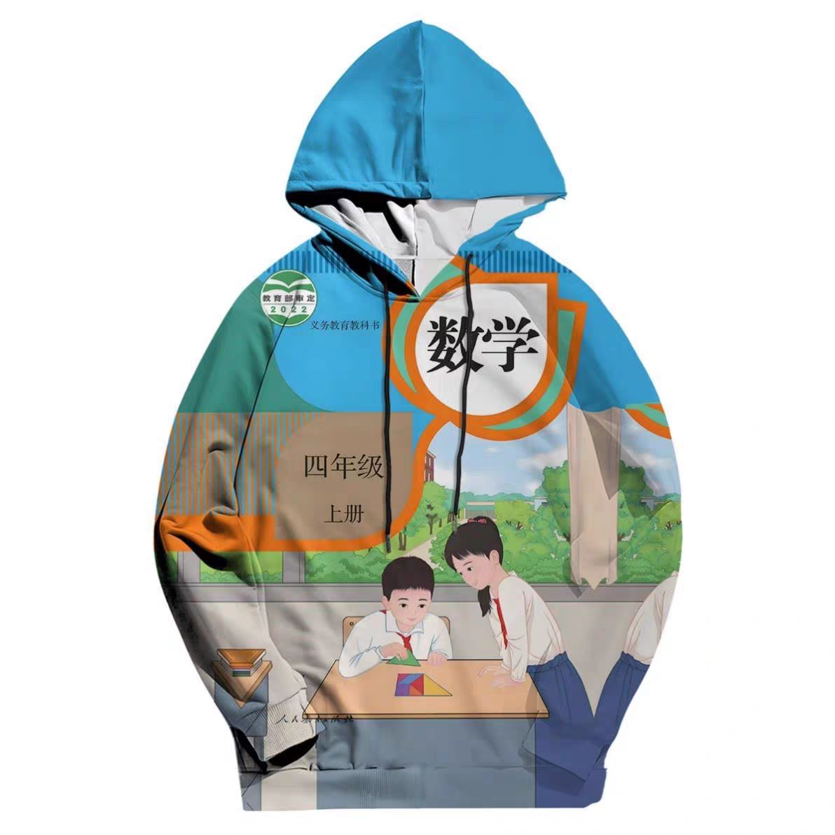 秋季爆款小学数学教科书A课本3D印花连帽卫衣青少年男女学生款上