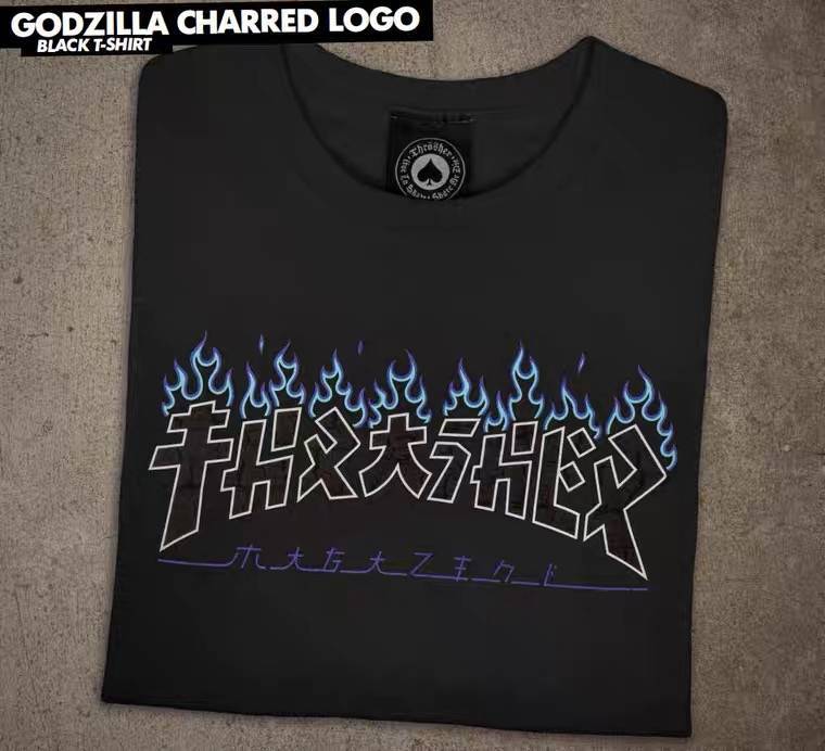 【花伦】Thrasher Godzilla Charred幽灵哥斯拉蓝黑火蓝紫短袖T恤