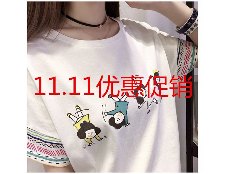 2018新款夏季短袖t恤衫女宽松圆领可爱卡通上衣时尚显瘦女装批发