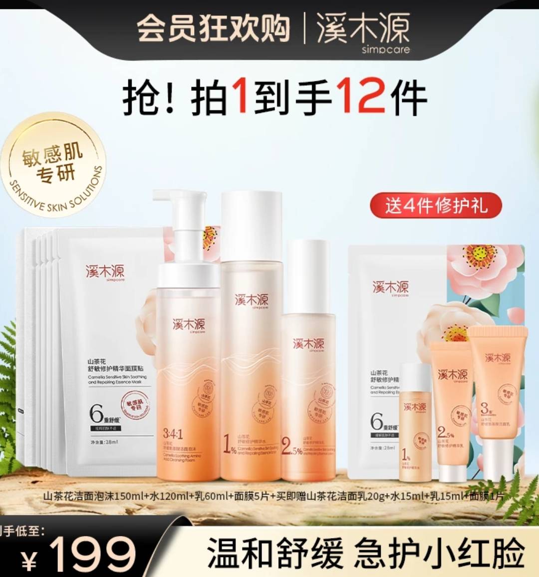 【敏肌补水修护】溪木源山茶花水乳洗面奶套装敏感肌补水保湿舒缓