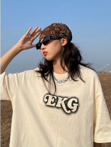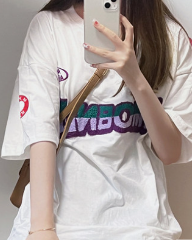 美式复古字母毛巾绣短袖t恤女ins夏季宽松纯棉百搭上衣设计感小众