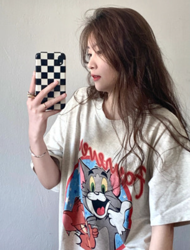 捡漏专柜撤回尾单大牌外贸猫和老鼠汤姆与杰瑞美式圆领短袖t恤女