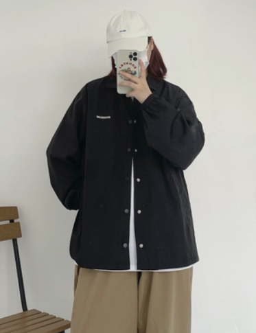 教练夹克男装春秋外套翻领纯色情侣ins百搭外套休闲宽松潮