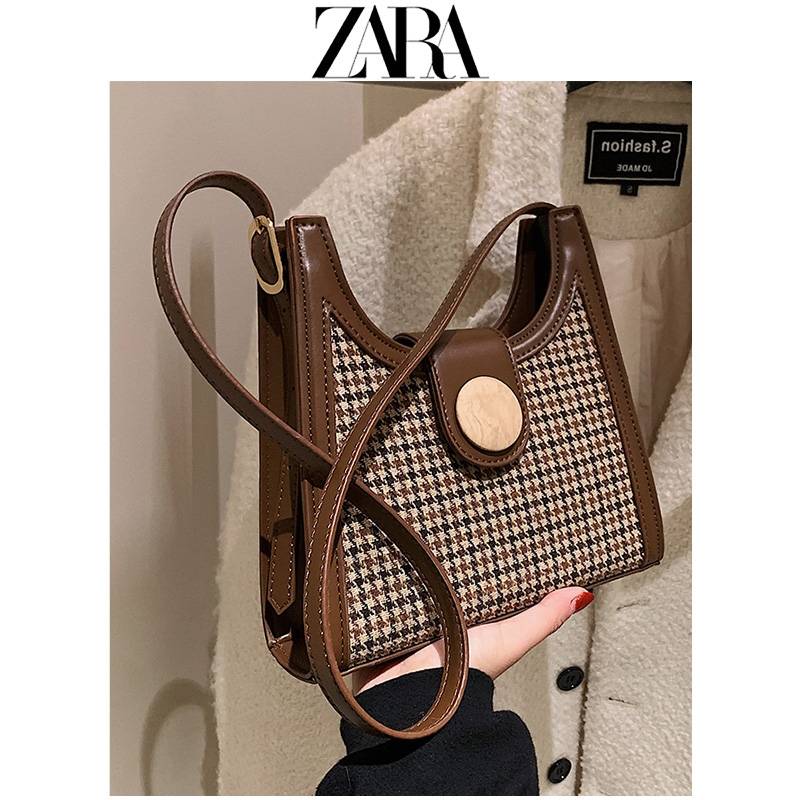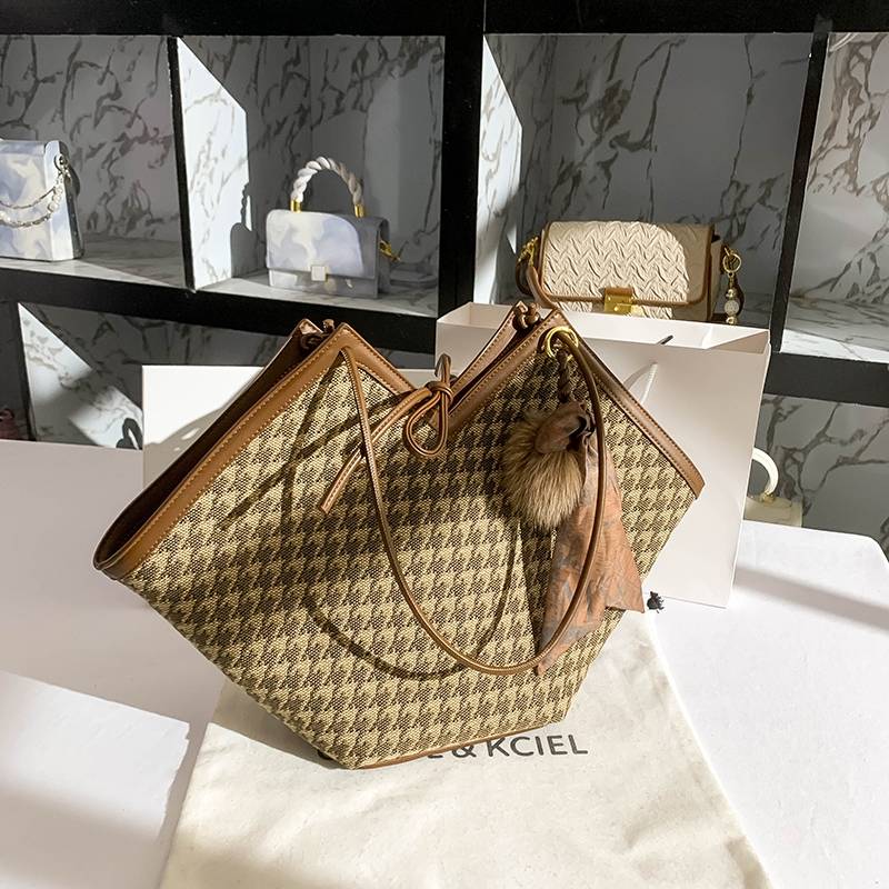 大容量包包质感高级小众帆布水桶包格纹通勤包斜挎包
