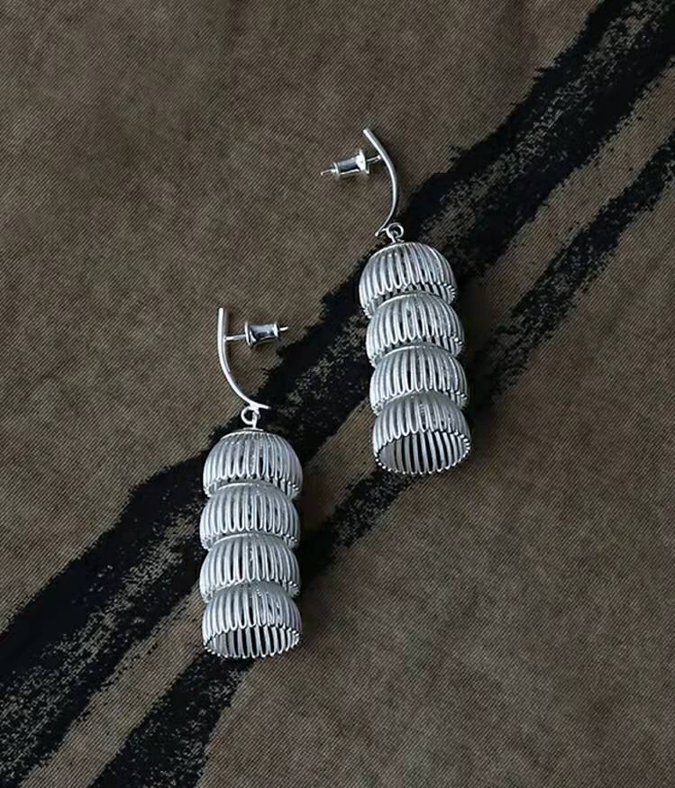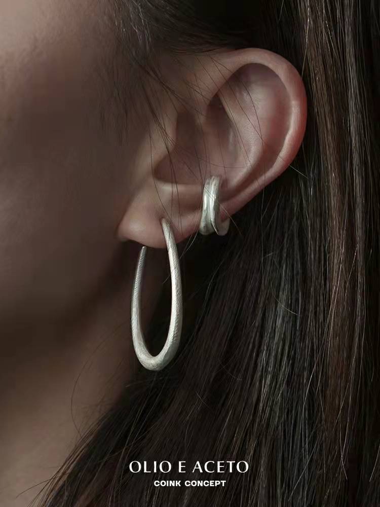 纯银水滴形大圈耳环原创925银手工质感高级感耳环