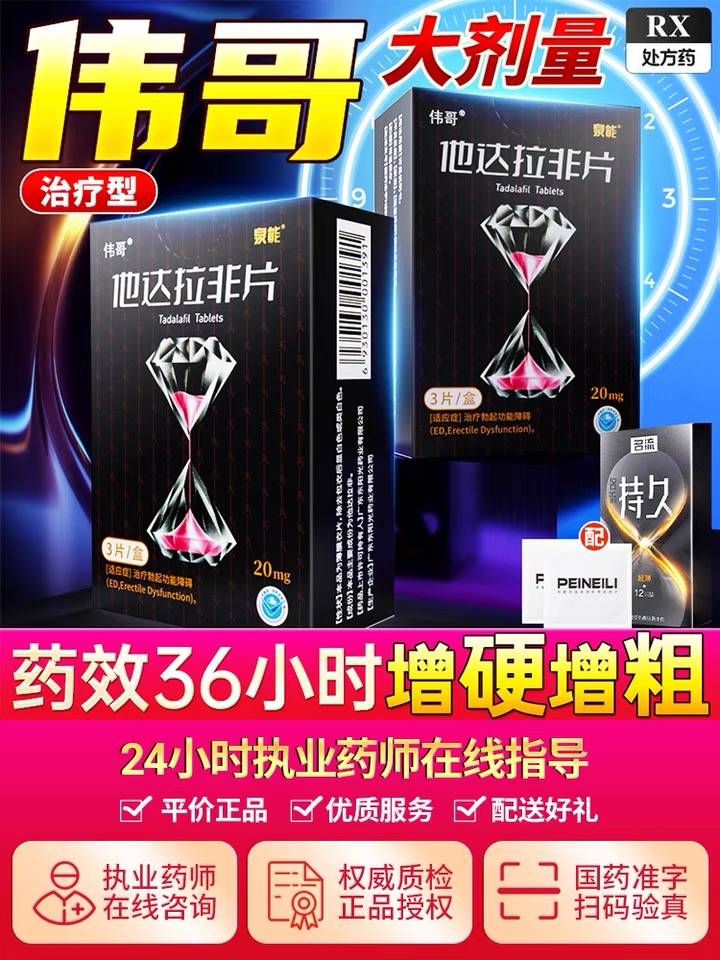 伟哥他达拉非片20mg*3片正品官方旗舰店伟哥药治疗男性勃起功能障碍壮阳非速效药助勃非保健品官方旗舰店增硬男士万艾可配延