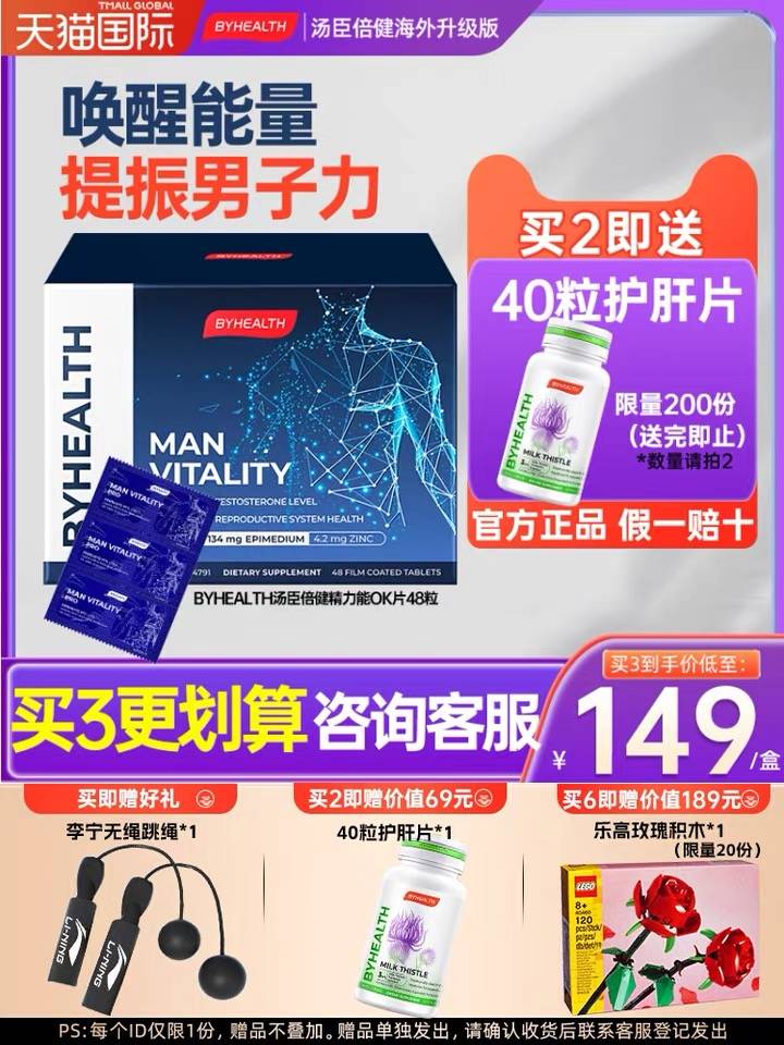 BYHEALTH汤臣倍健ok片男性活力精力片淫羊藿补锌肾玛咖男士保健品