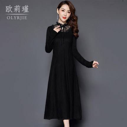 法式复古长袖连衣裙新款早秋韩国黑裙宽松女装