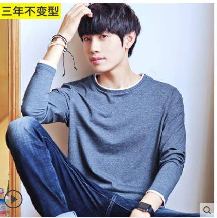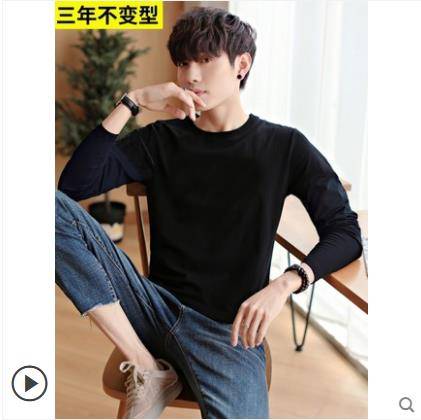 春季圆领男长袖T恤白色打底衫纯棉丅春秋全棉春装体桖内搭上衣服