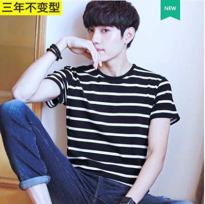 2019新款潮牌男黑白条纹纯棉短袖T恤潮流夏大码全棉宽松韩版丅血
