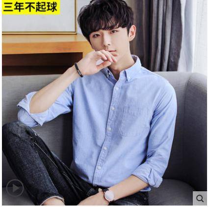 春季纯棉男长袖衬衫内搭牛津纺帅气春装休闲韩版潮流纯色衬衣上衣