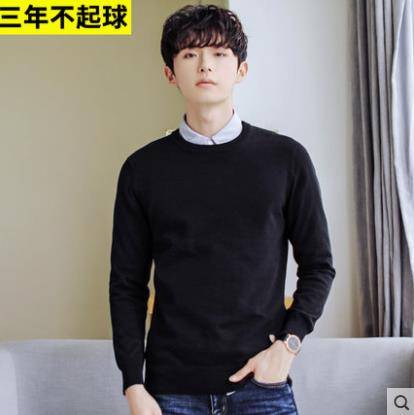 春秋季男纯色棉圆领黑色线衣打底衫大码毛衣针织衫修身套头衫上衣