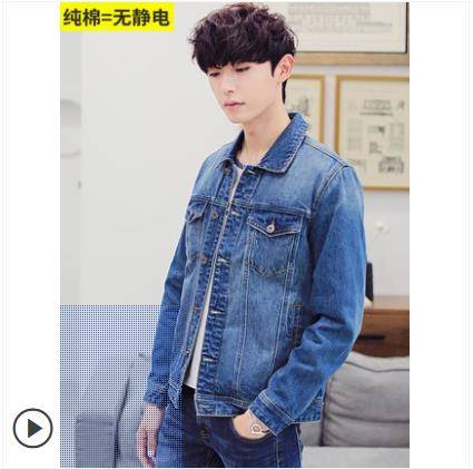 秋冬季男牛仔衣外套夹克纯色纯棉全棉复古胖子加厚大码上衣牛仔服