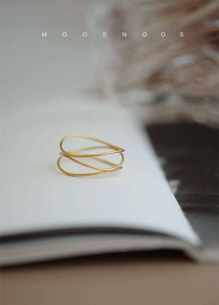 三层细线条交织设计感几何个性钛钢镀18K金食指戒指女