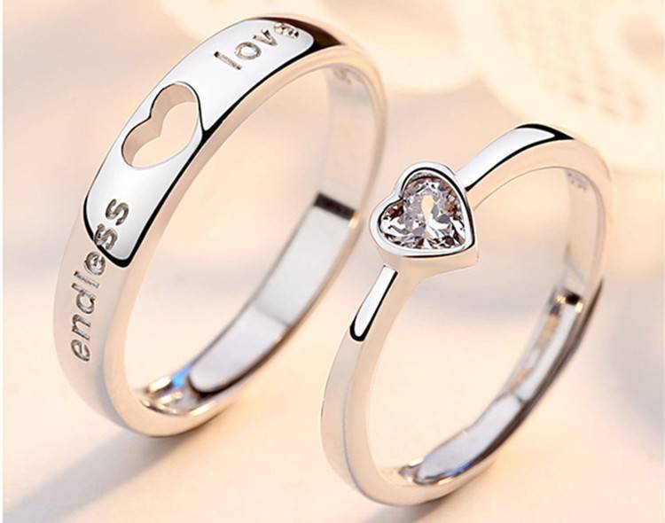 S925银 520结婚情侣对戒 韩版男女开口戒指 七夕纪念日礼物