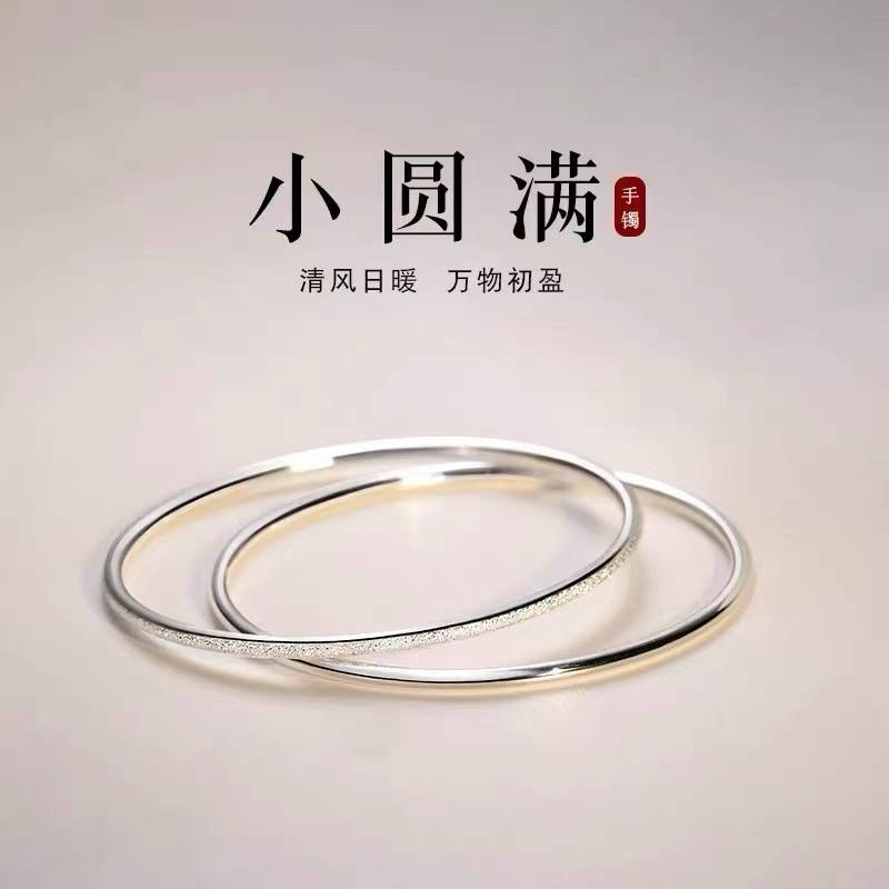 S999纯银实心手镯女光面高级素圈足银叠戴手链送闺蜜女友生日礼物