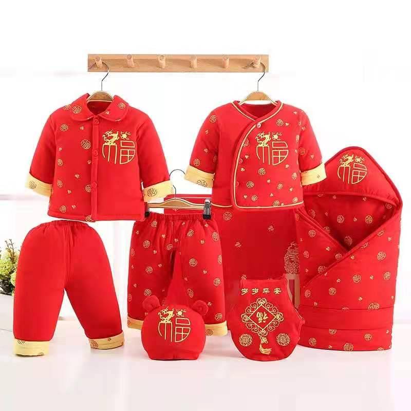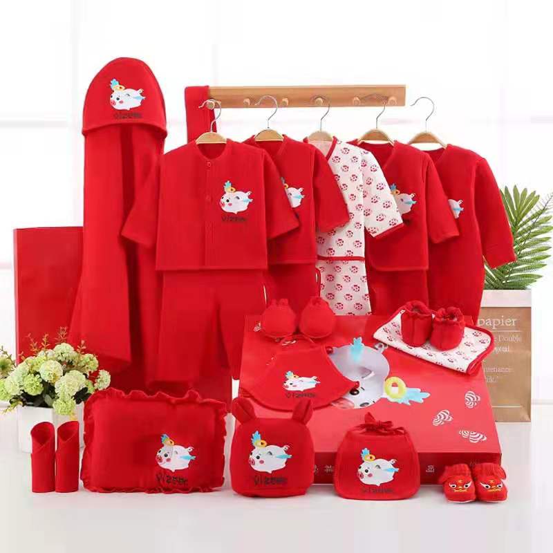 初生婴儿礼盒大红套装男孩女宝宝3个6月衣服春夏季保暖猪年新生