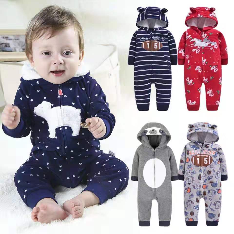 外贸婴儿男女宝连帽长袖摇粒绒保暖连体衣爬服哈衣外出抱衣秋冬装