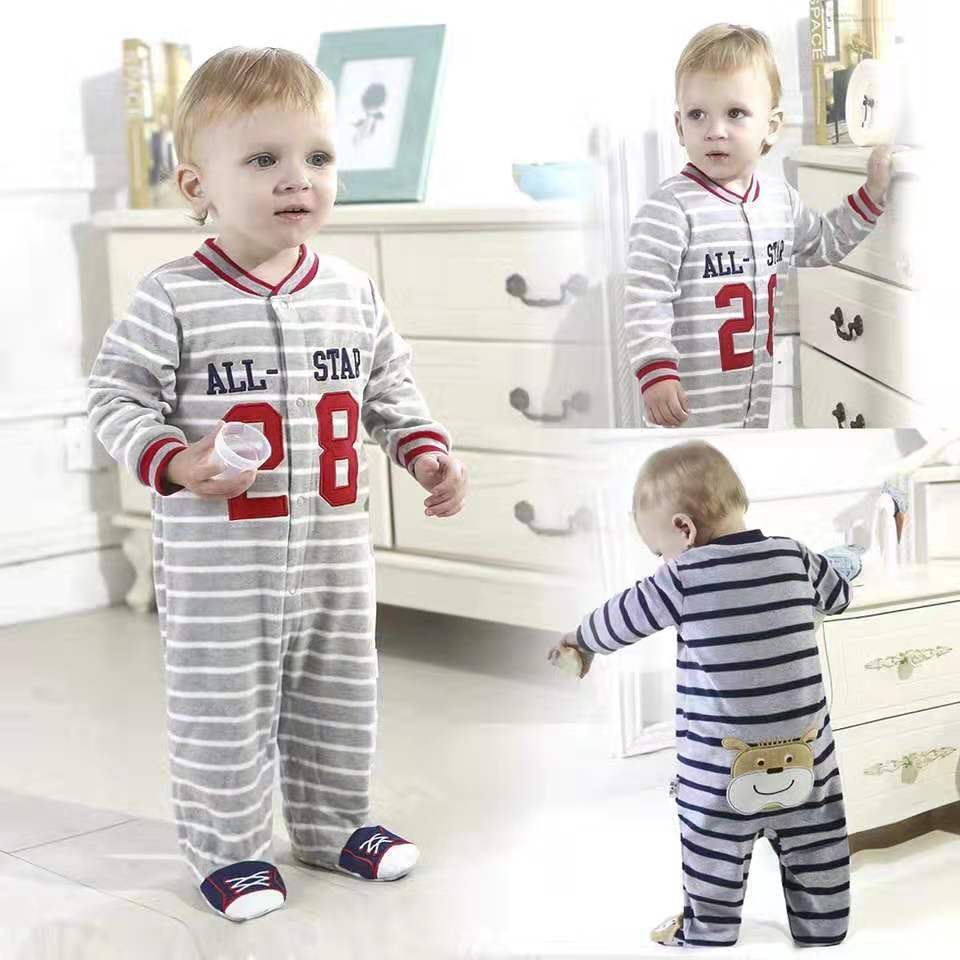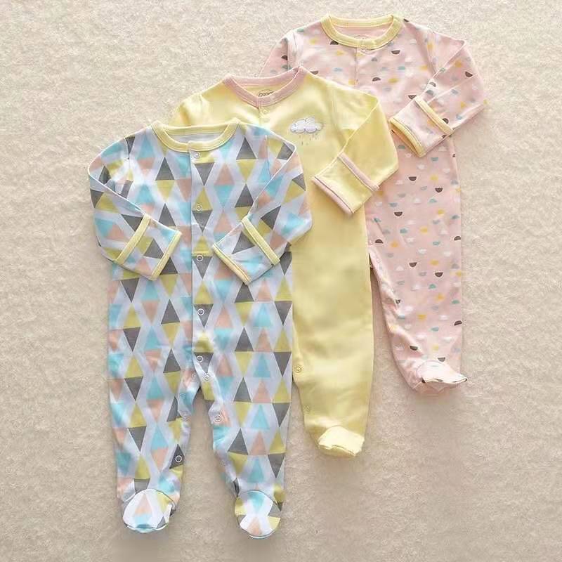 3件包 外贸包脚连体衣婴儿春秋0爬服9女6纯棉男宝宝哈衣新生儿
