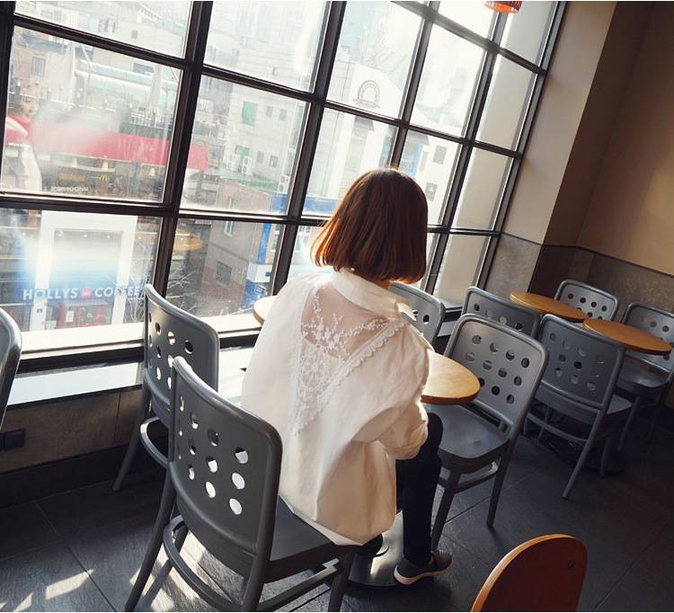 2018春秋大码女装韩版新款V领蕾丝拼接长袖纯色露背百搭衬衫女 50.00 已售:0件