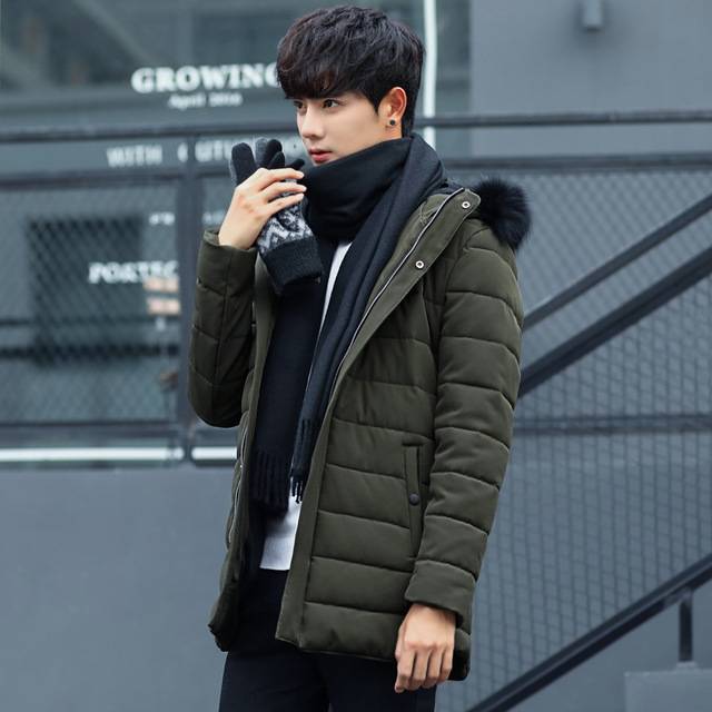 2018秋冬新款中长款棉衣男加厚保暖棉袄男士棉服连帽毛领男外套