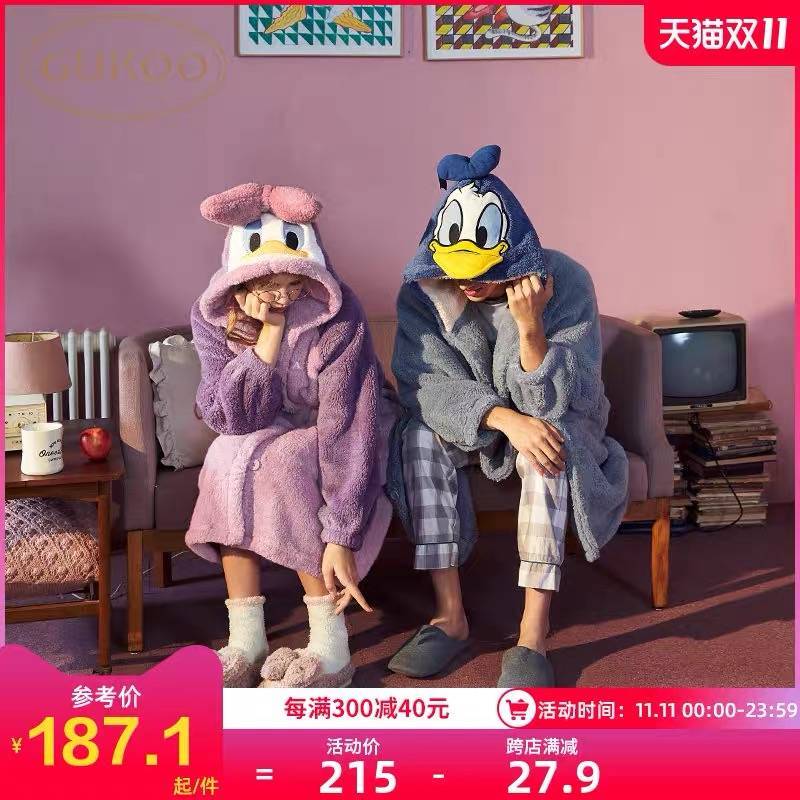 迪士尼情侣睡衣秋冬珊瑚绒睡衣家居服可爱睡衣女冬睡衣男居家服