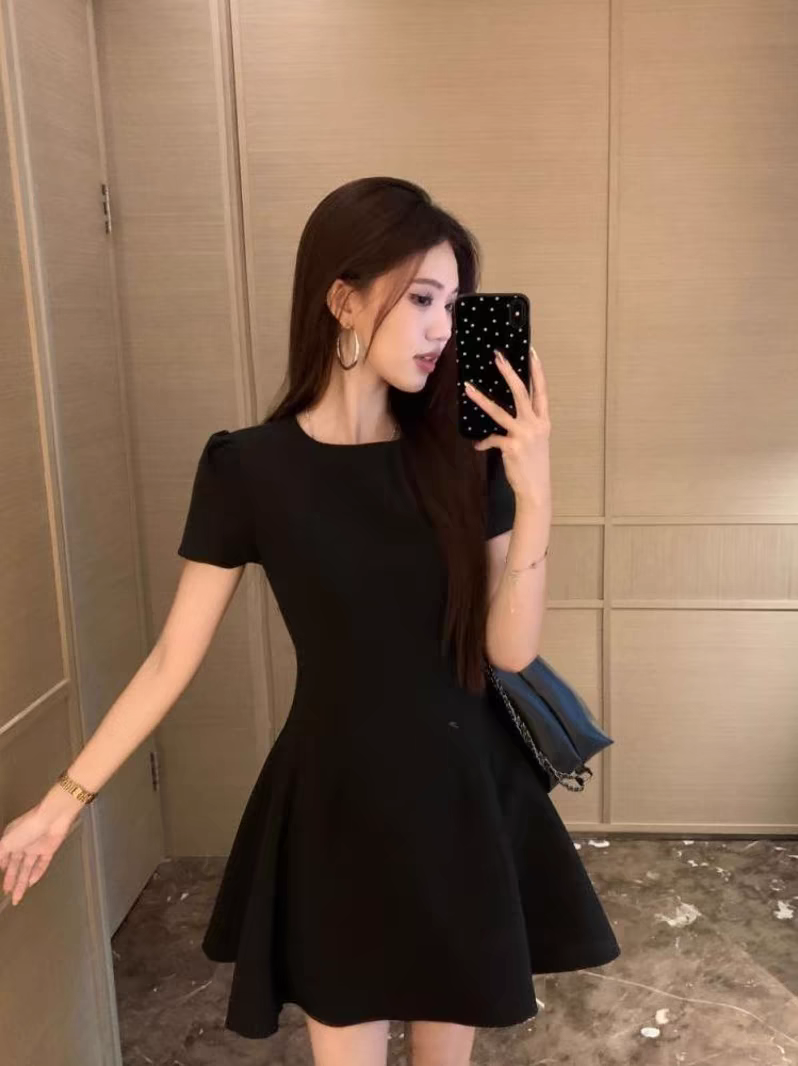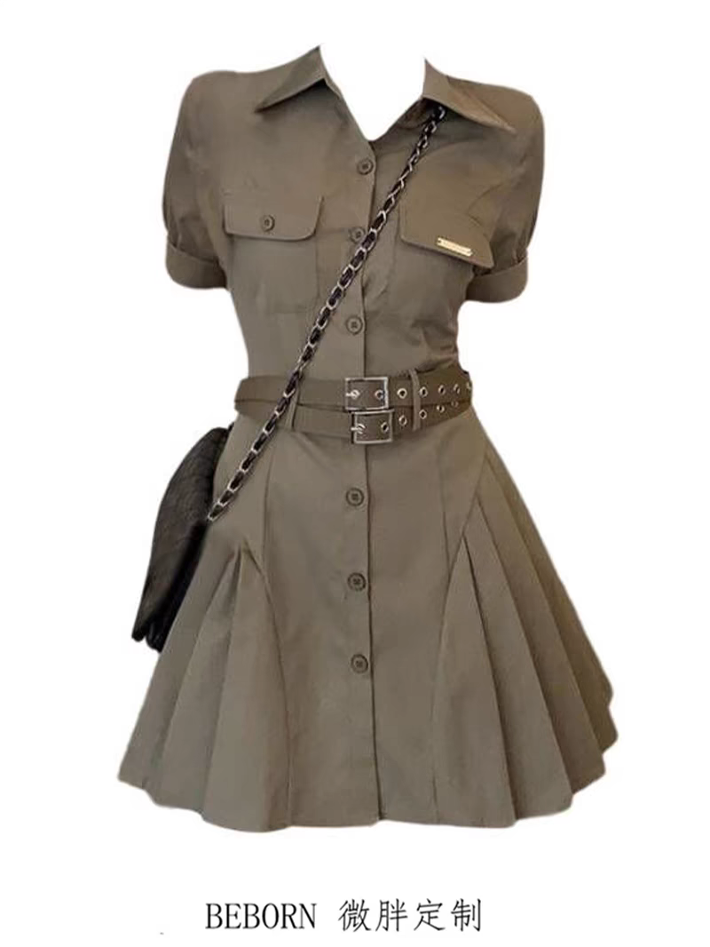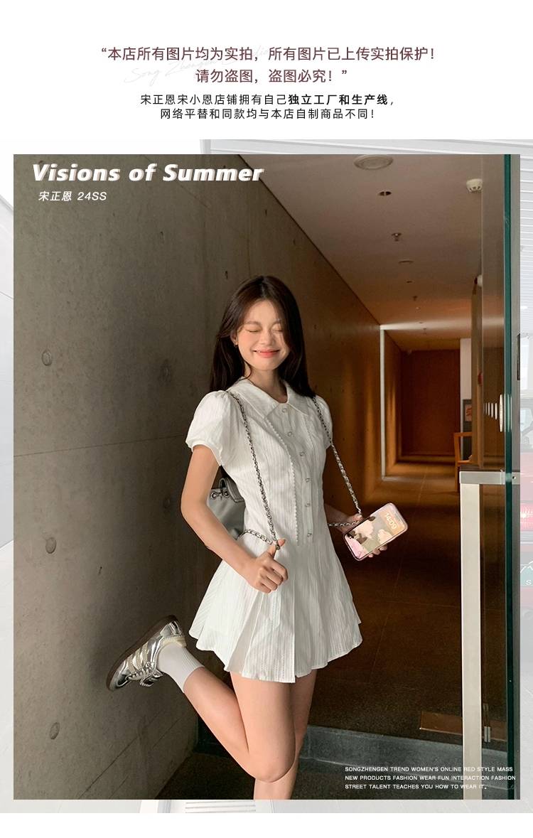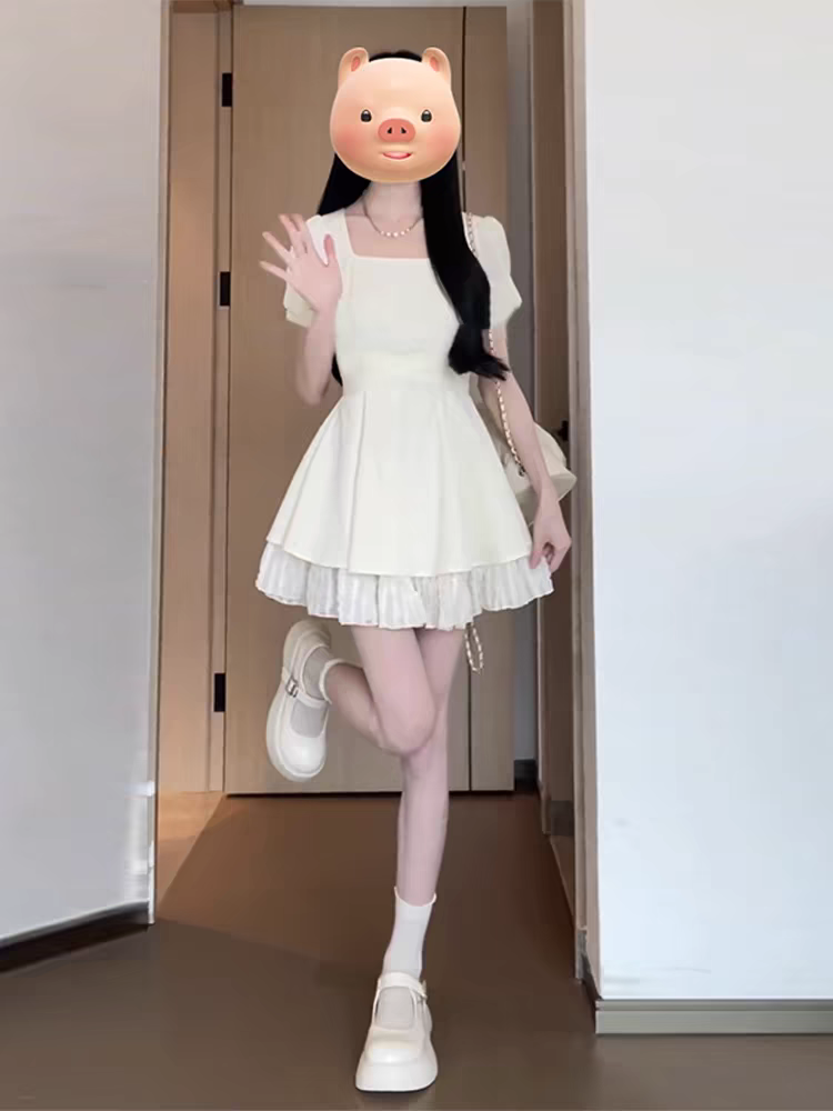 欧货时尚洋气娃娃领连衣裙女2021年夏季新款 气质收腰泡泡袖a字裙