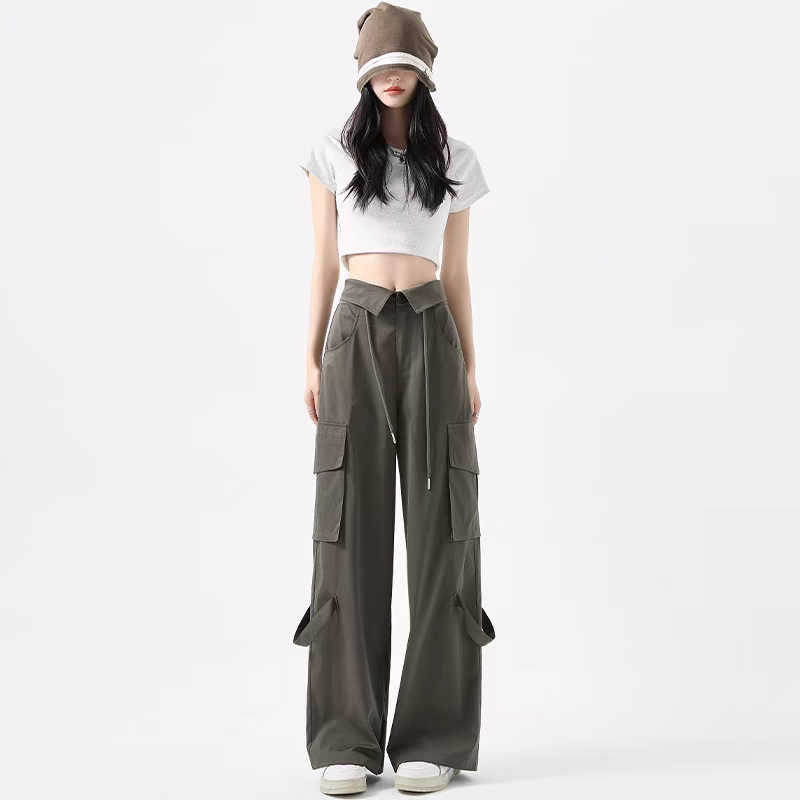军绿色速干工装裤女夏季薄款高腰休闲美式嘻哈跳舞运动直筒阔腿裤