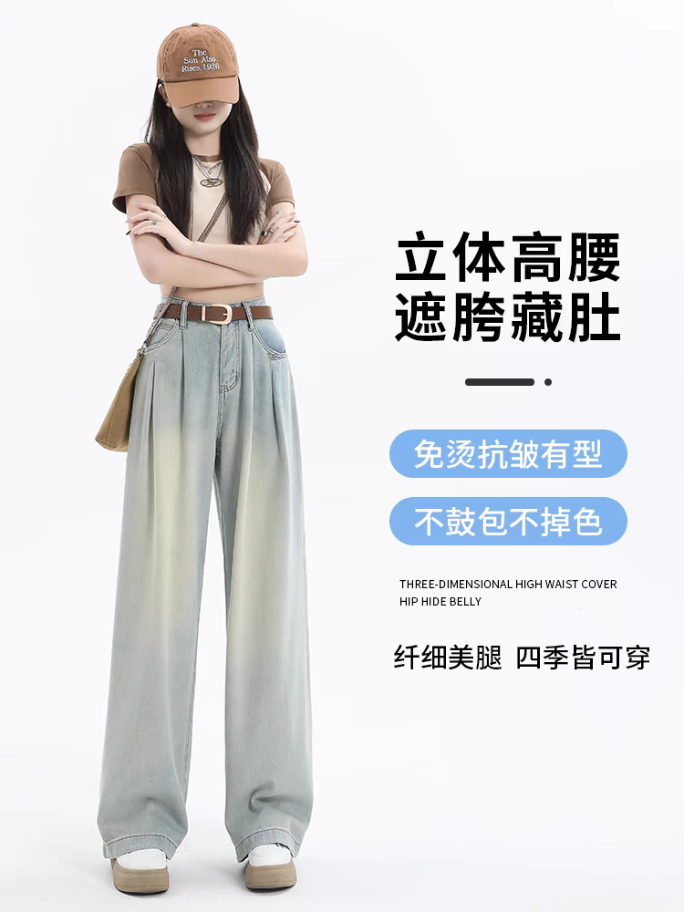 直筒牛仔裤女夏季薄款2024年新款宽松高腰垂感小个子天丝阔腿裤子