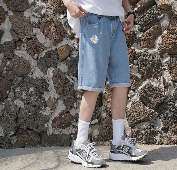 2020夏季新品短款浅色牛仔裤男小雏菊刺绣五分裤宽松潮流直筒短裤 39.00 已售:0件